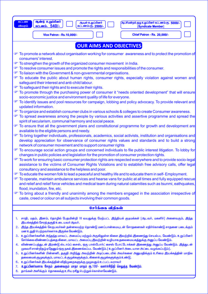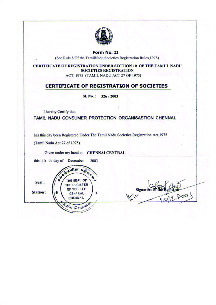 The mission of Government of Tamil Nadu is to empower all consumer segments of the State to obtain a just deal in the purchase of goods and services in the State of Tamil Nadu and to uphold consumer rights.
